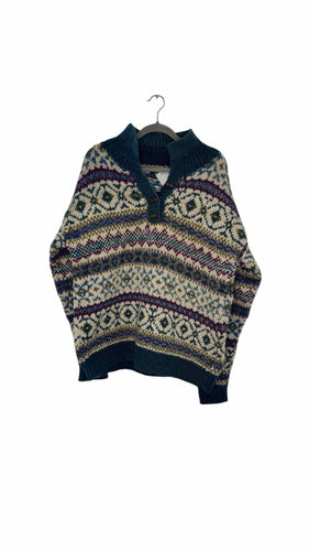 Size L/XL Ivory Print Pre-Owned Sweater- Ladies