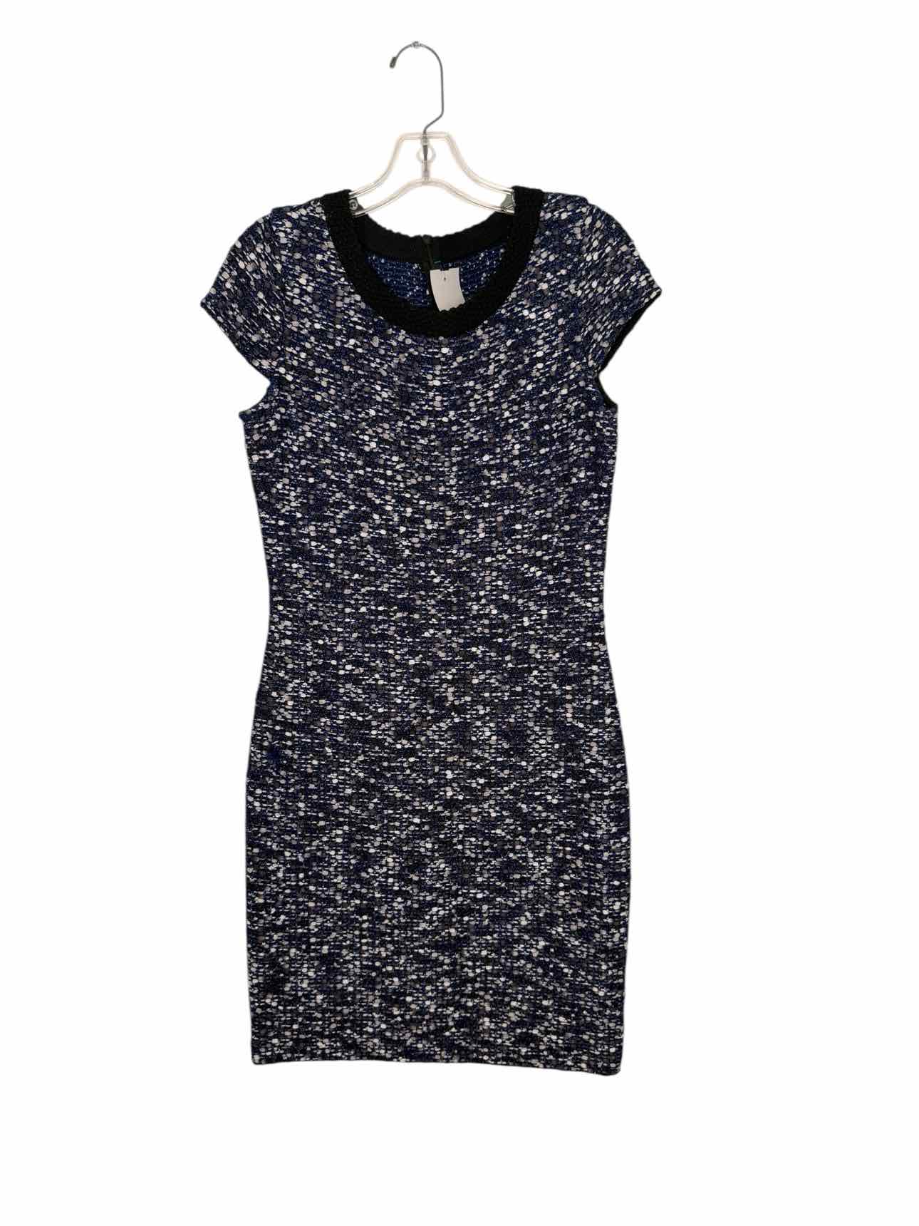 St John Size 6 Navy Print Pre-Owned Dress- Ladies
