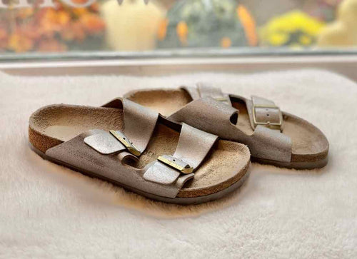 Birkenstock Size 39 Silver Sandal Pre-Owned Shoes- Ladies